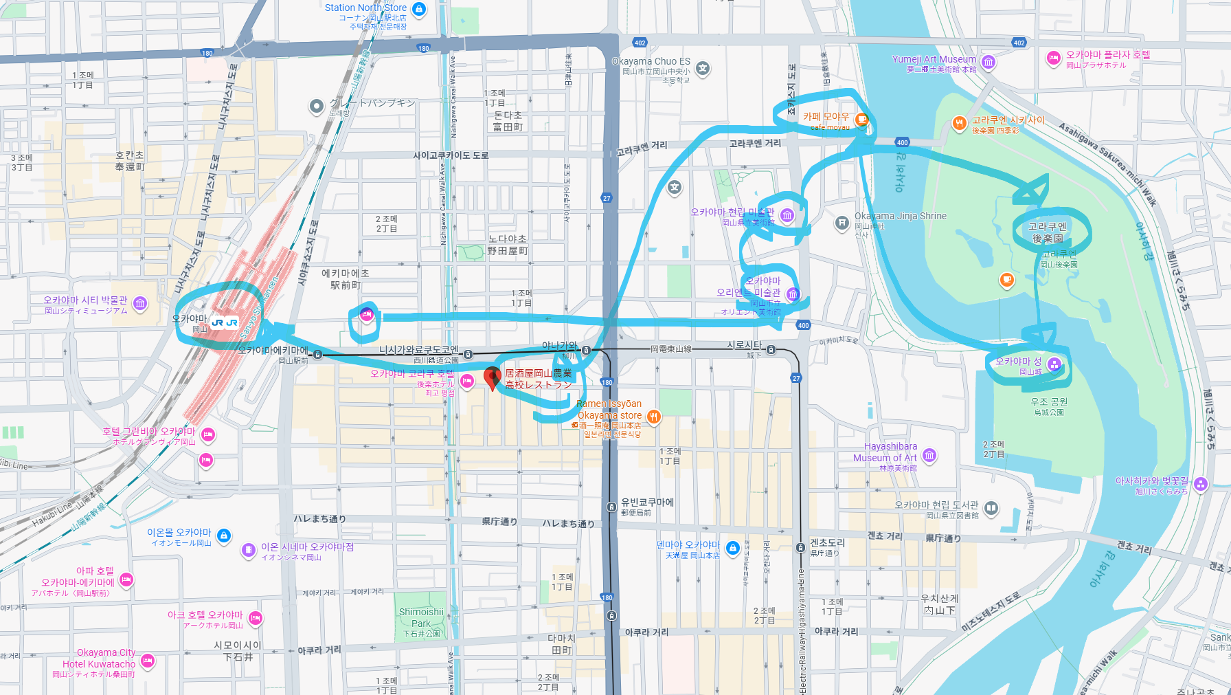 과감하게 고베를 포기하고 이왕 오카야마에 온 겸 어제 아쉽게 못 봤던